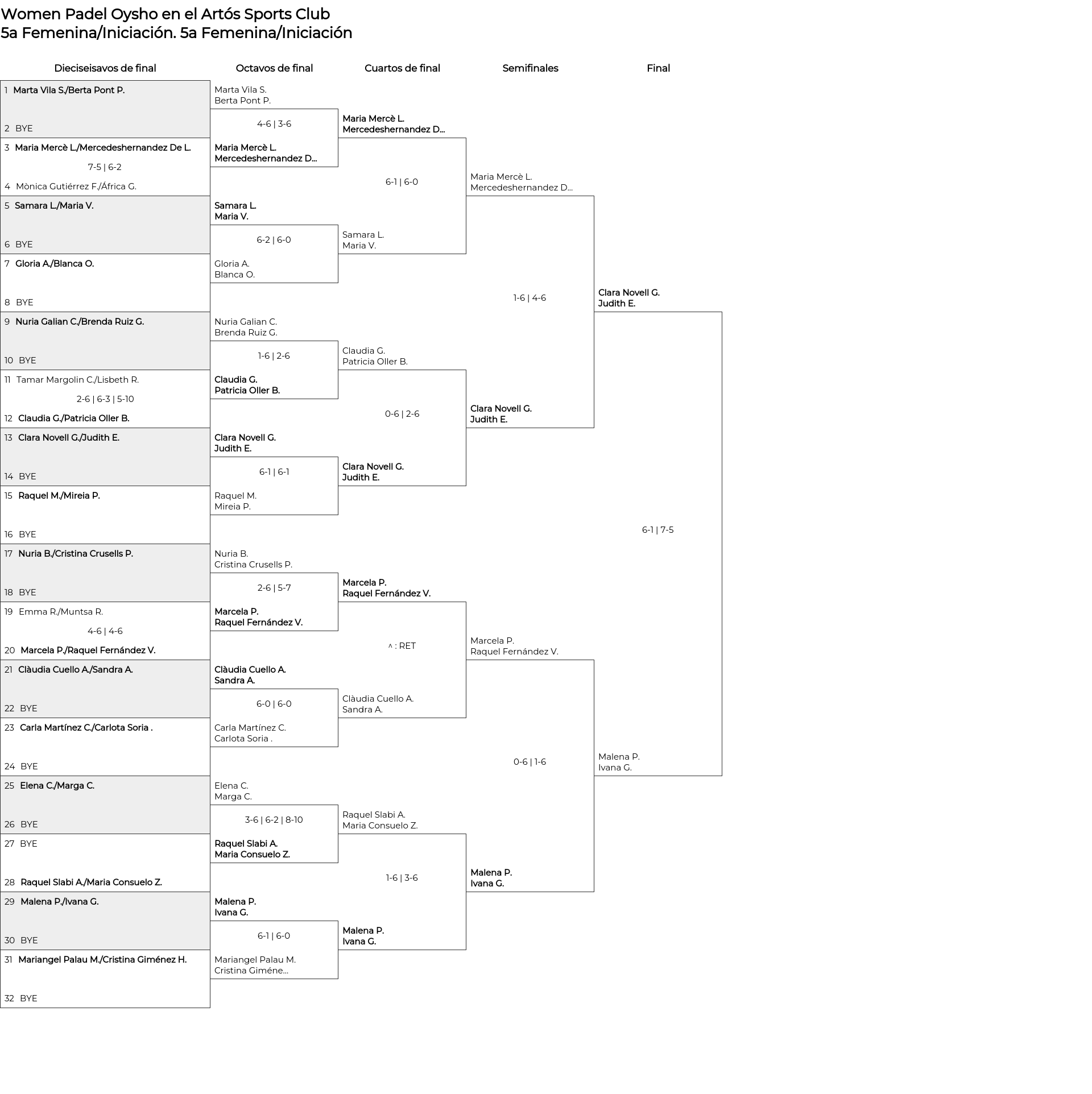 5a Femenina/Iniciación . Desde 03/03/2024 10:00 hasta 10/03/2024 15:00