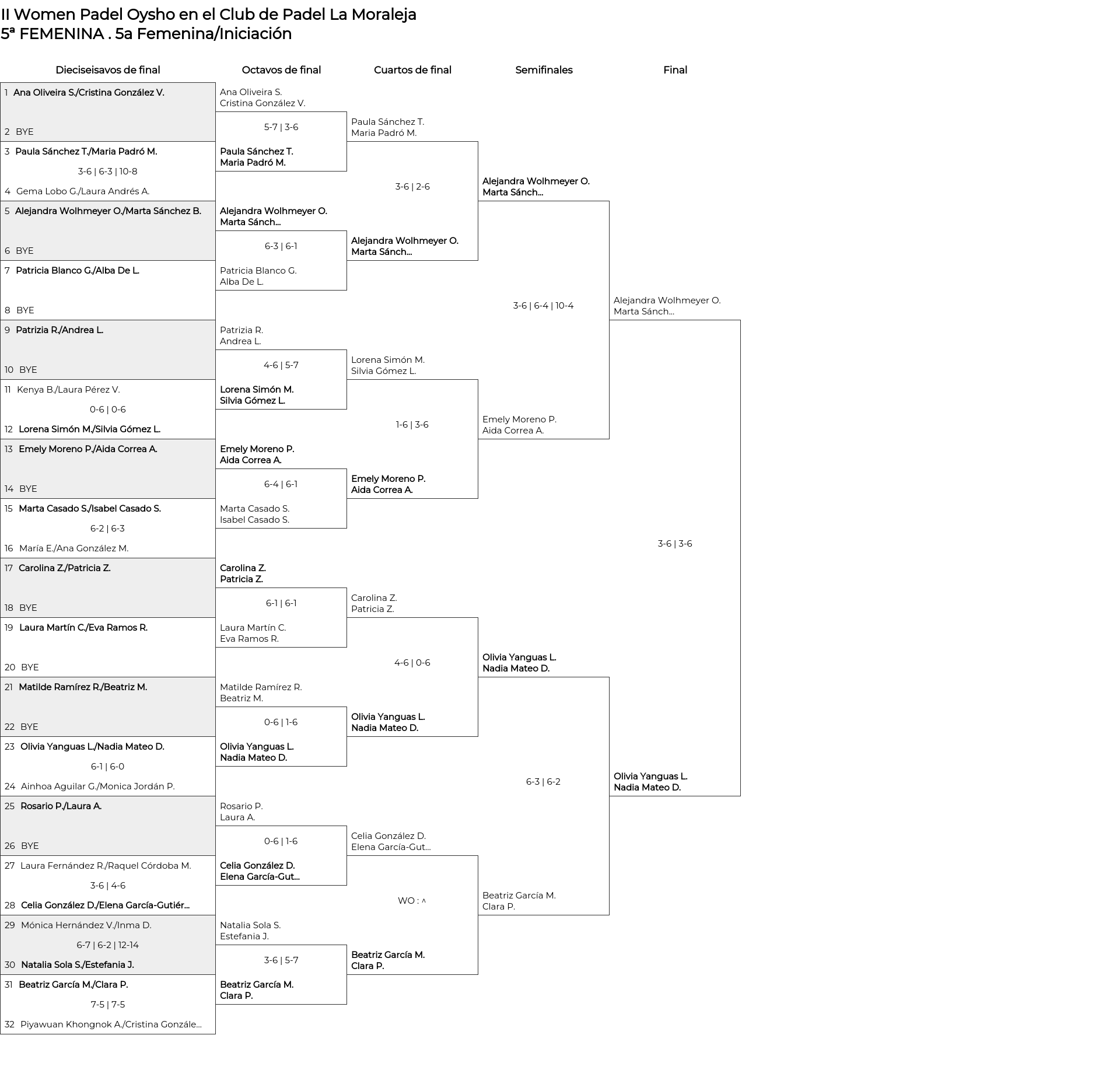 Cuadro principal 5a Femenina/Iniciación