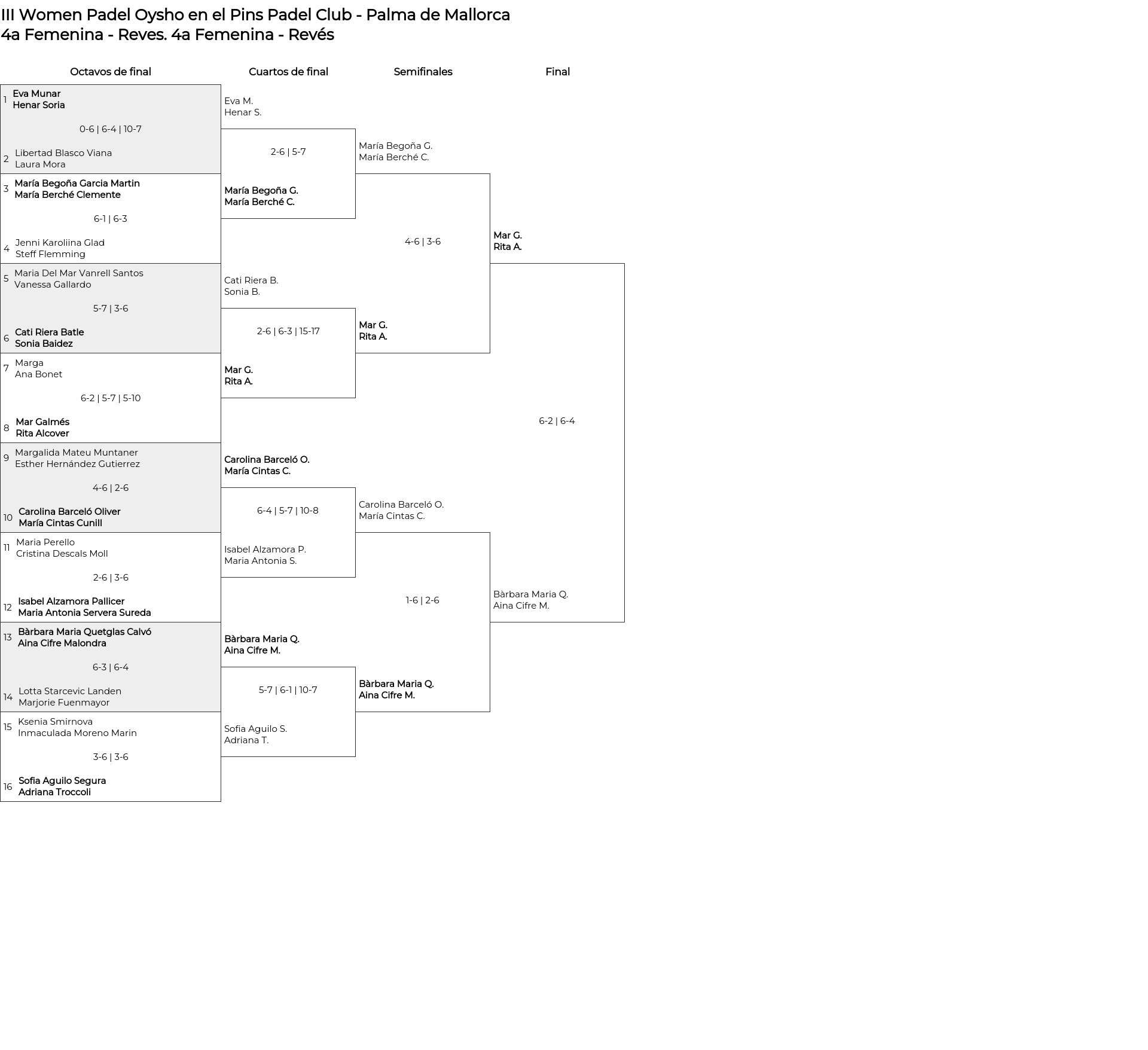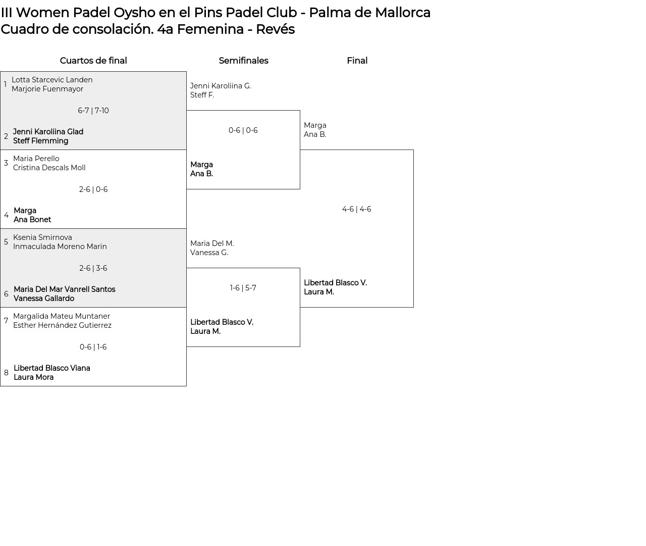 Cuadro de consolación 4a Femenina - Revés