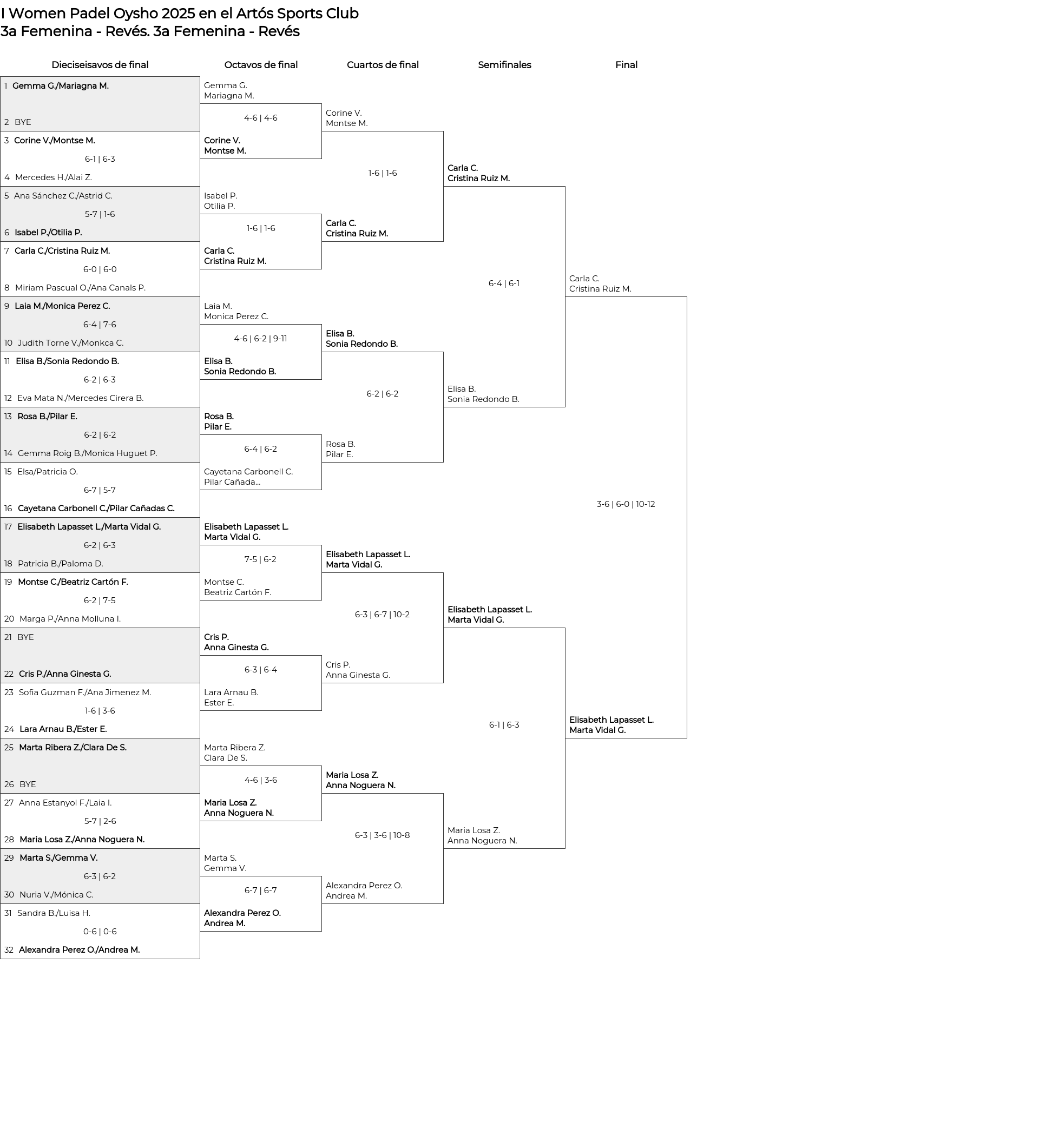 Cuadro de consolación 3a Femenina - Revés