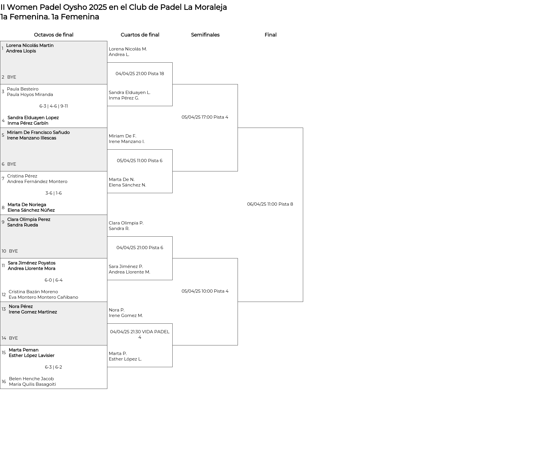 1a Femenina . Desde 01/04/2025 18:00 hasta 06/04/2025 14:00