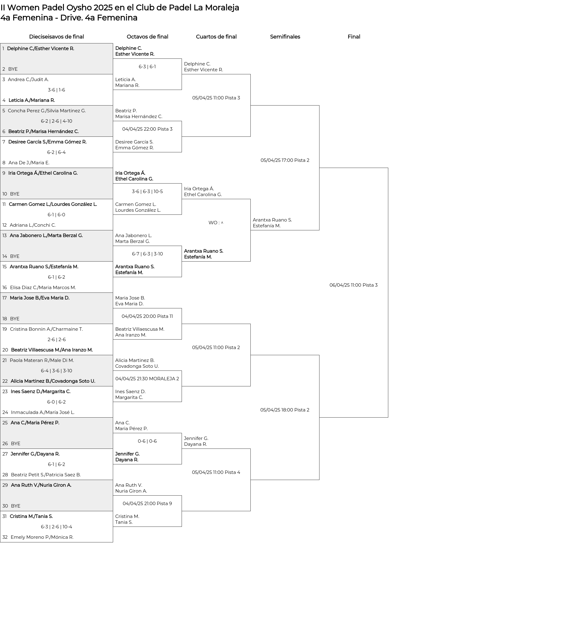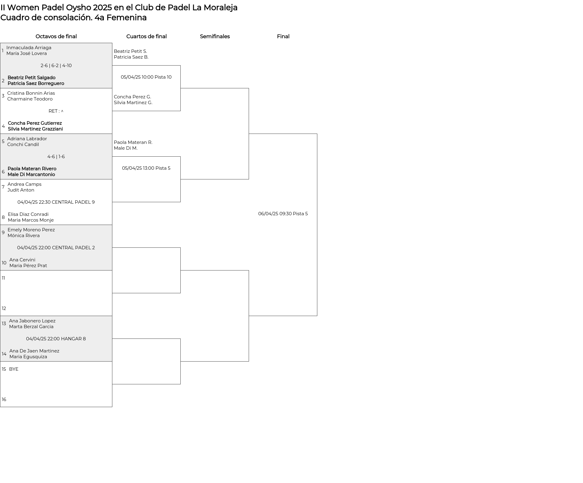 4a Femenina . Desde 01/04/2025 18:00 hasta 06/04/2025 14:00