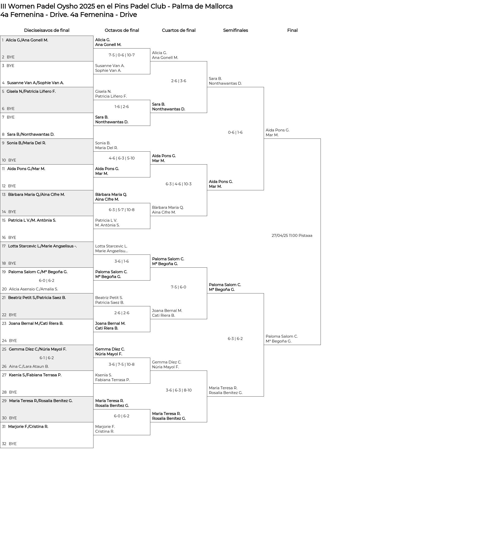 Cuadro principal 4a Femenina - Drive