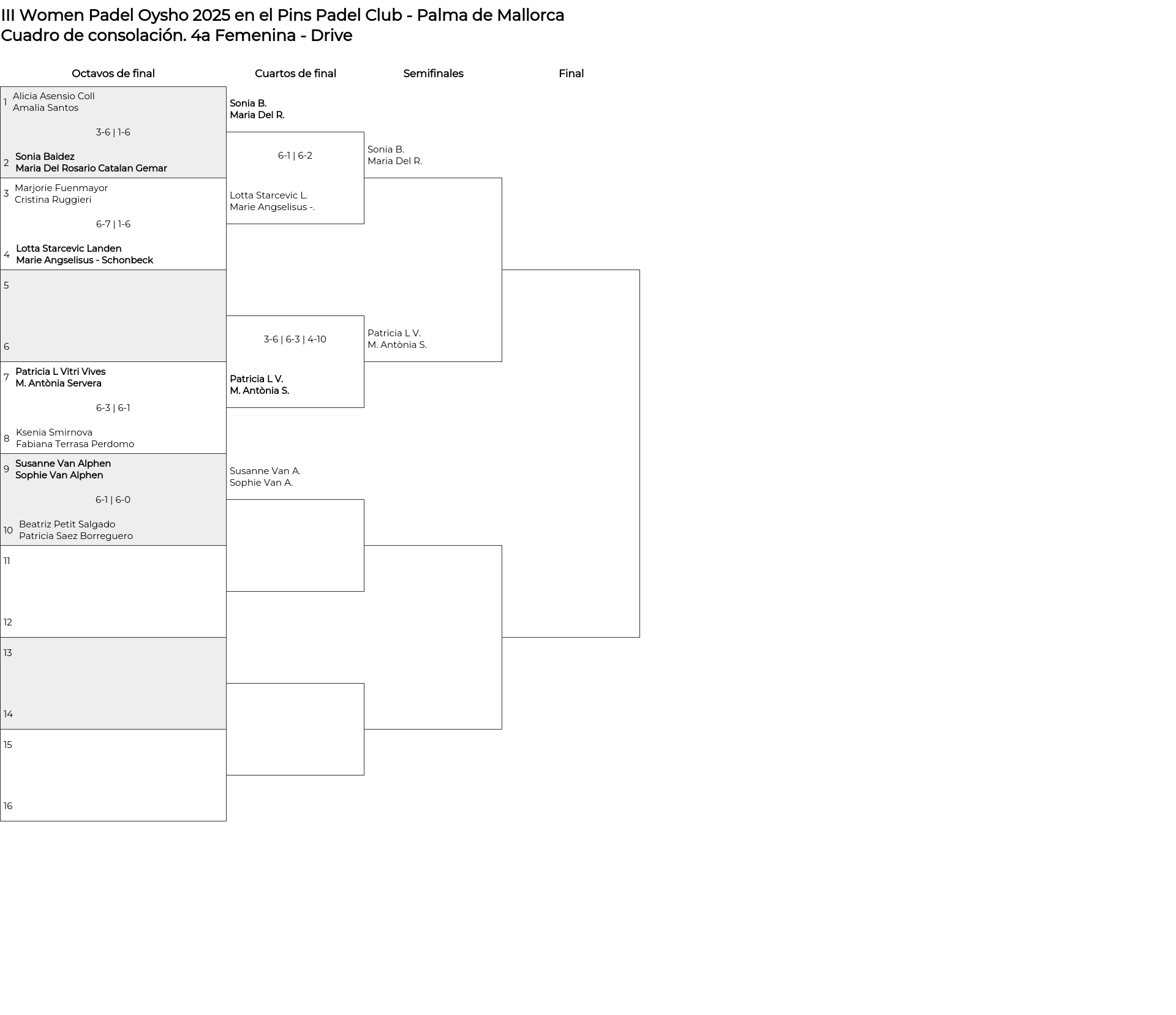 Cuadro de consolación 4a Femenina - Drive